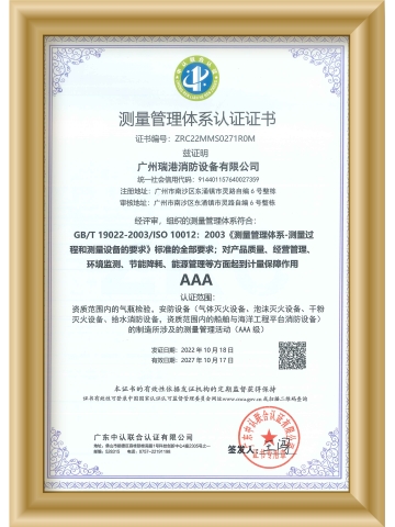 測(cè)量管理體系認(rèn)證證書(shū)